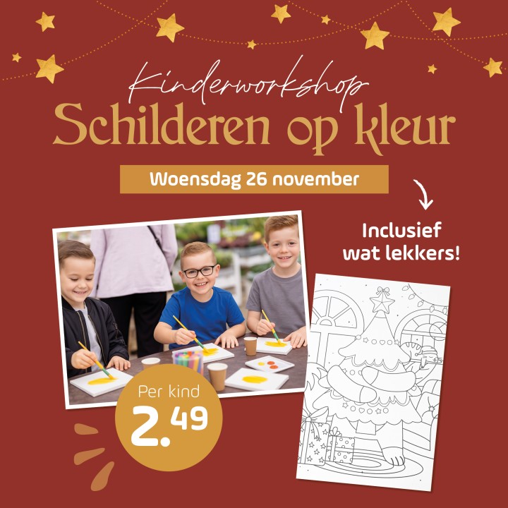 Bezoek onze kinderworkshop op woensdagmiddag 26 november: schilderen op kleur!