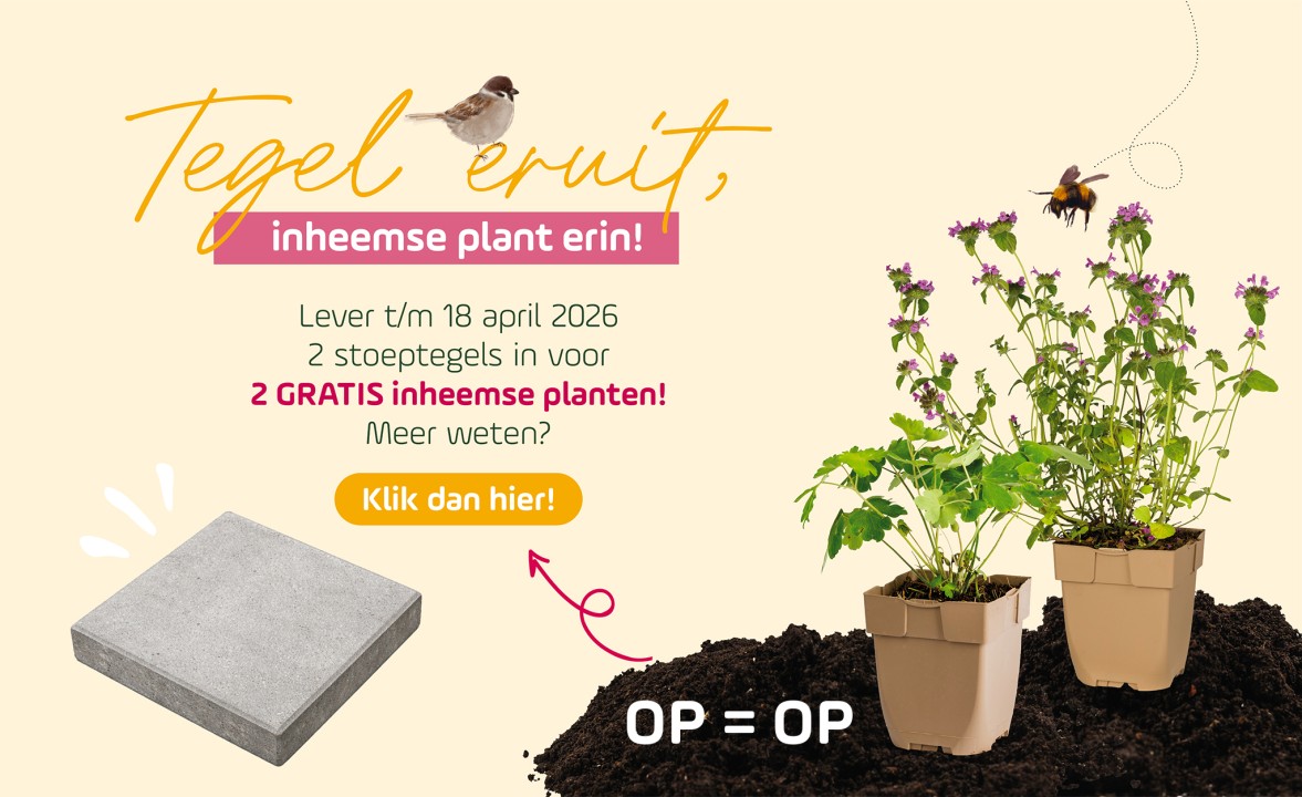 Lever t/m 18 april 2026 2 stoeptegels in voor 2 GRATIS inheemse planten.