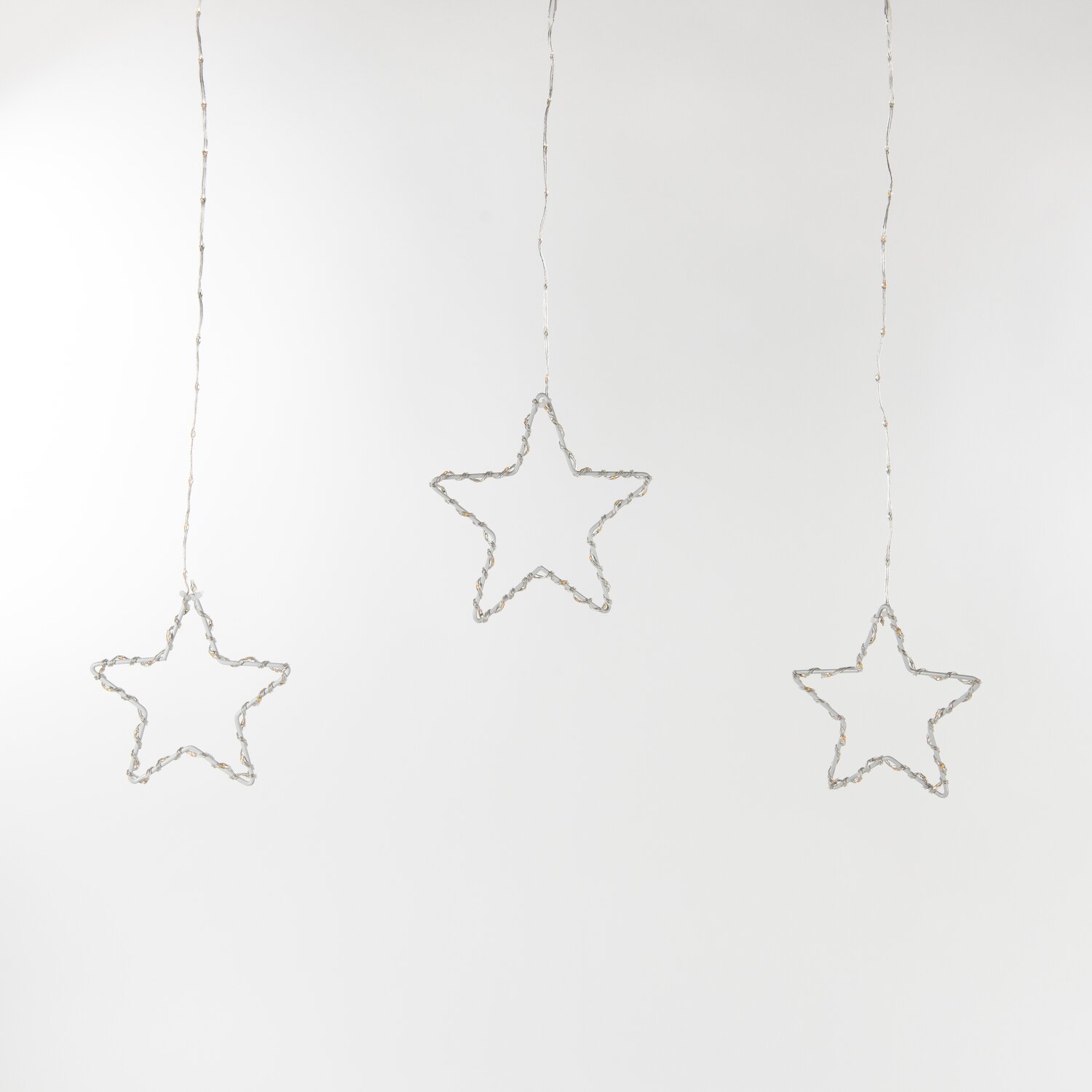 Deze ster-gordijnverlichting in casual wit voegt een winterse en moderne sfeer toe aan ramen, wanden en doorgangen.