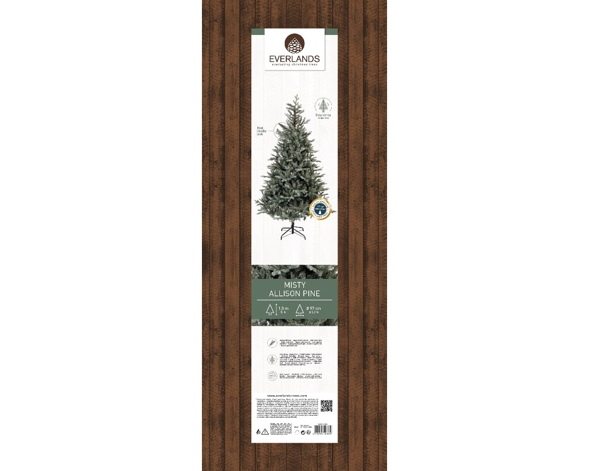 Deze kunstkerstboom heeft een combinatie van echte en zachte naalden, waardoor hij een natuurlijke uitstraling heeft. Met 54 takken verdeeld over 3 secties is de "Allison Pine Misty" boom ontworpen voor eenvoudige montage en een weelderige uitstraling. Met 1778 tips biedt de boom overvloedige ruimte om je favoriete kerstversieringen en ornamenten op te hangen.