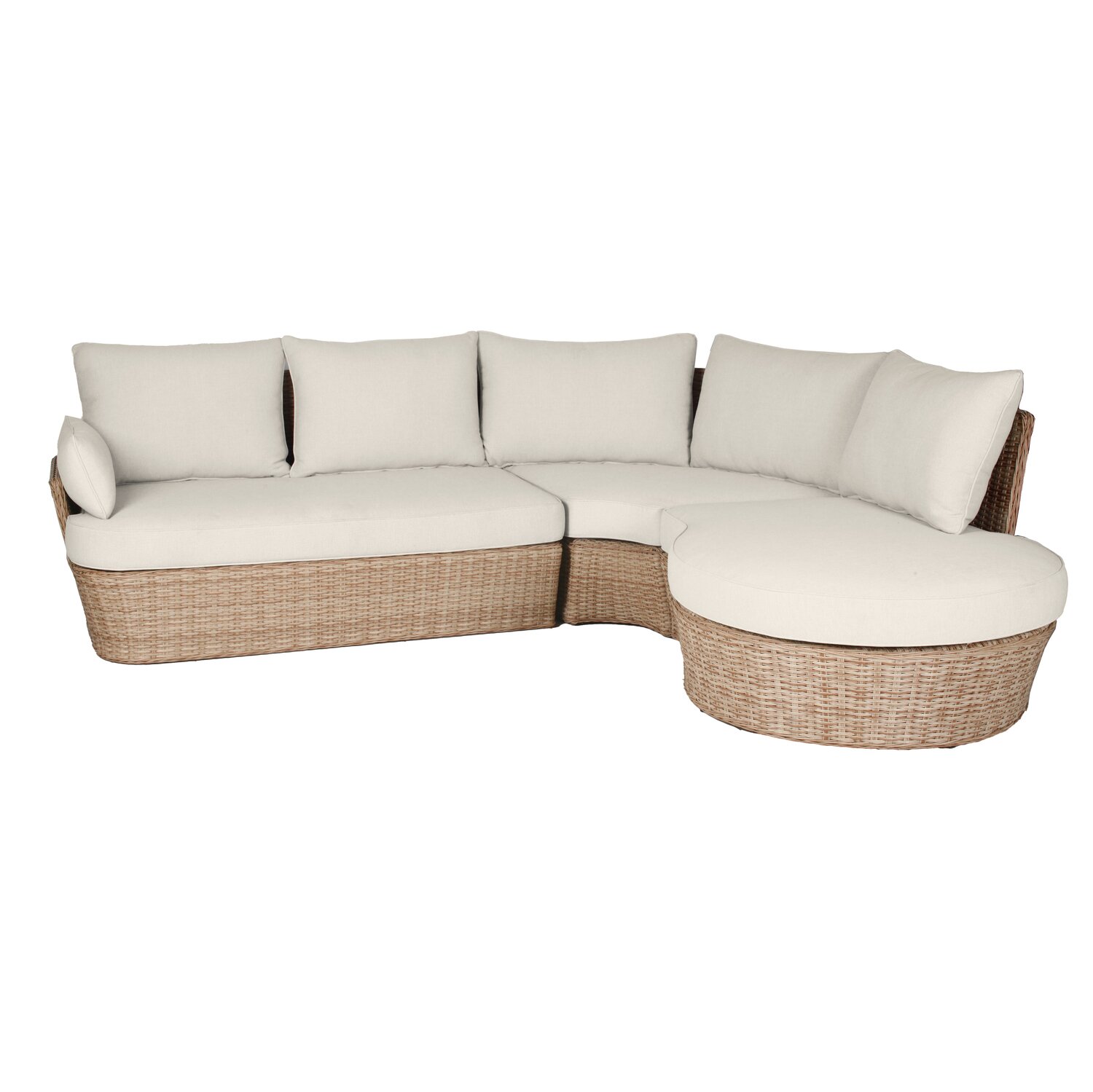 • Stijlvol design: De combinatie van beige wicker en crèmekleurige accenten geeft de hoekbank een tijdloze en stijlvolle uitstraling.
