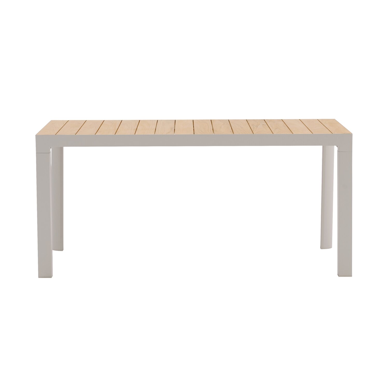 Het beige aluminium frame geeft de tafel een eigentijdse uitstraling. Bovendien is aluminium zeer makkelijk te onderhouden. Het teakhouten tafelblad voegt een prachtig natuurlijk element toe en wordt met de jaren alleen maar mooier, waardoor de Bahia tafel een investering is in langdurige schoonheid.