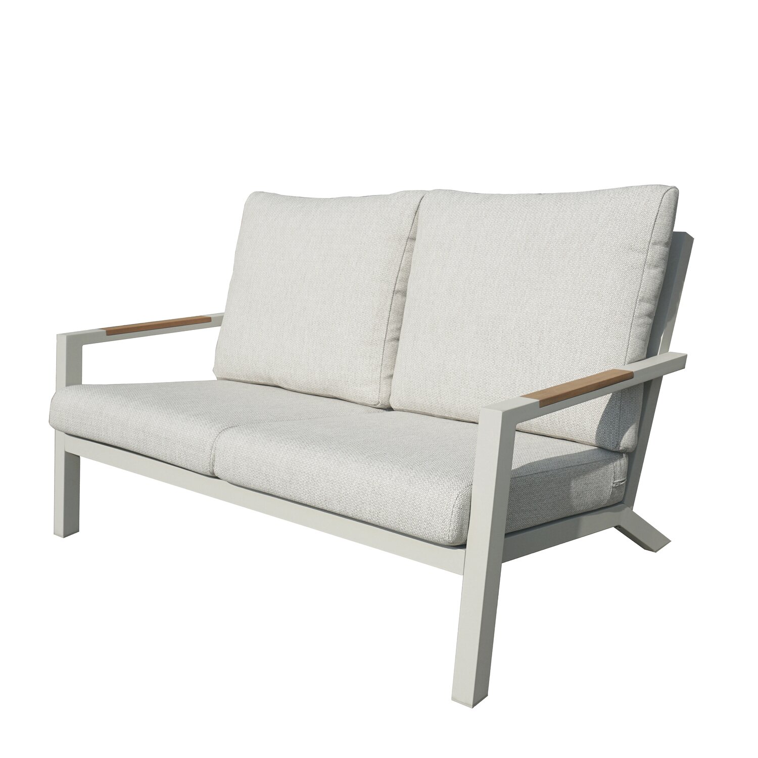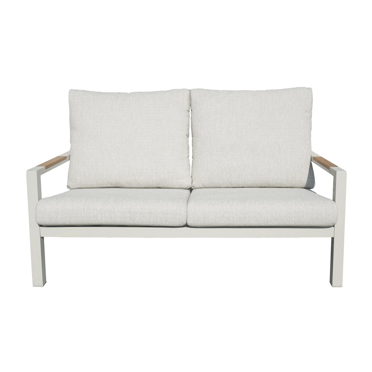 Deze 2-zitsbank is vervaardigd uit aluminium en heeft een stevig aluminium frame. Dit zorgt niet alleen voor een luxe uitstraling, maar ook voor een lange levensduur. Aluminium is gekozen vanwege zijn robuustheid en onderhoudsvriendelijkheid, waardoor je jarenlang kunt genieten van dit prachtige meubelstuk zonder veel inspanning.