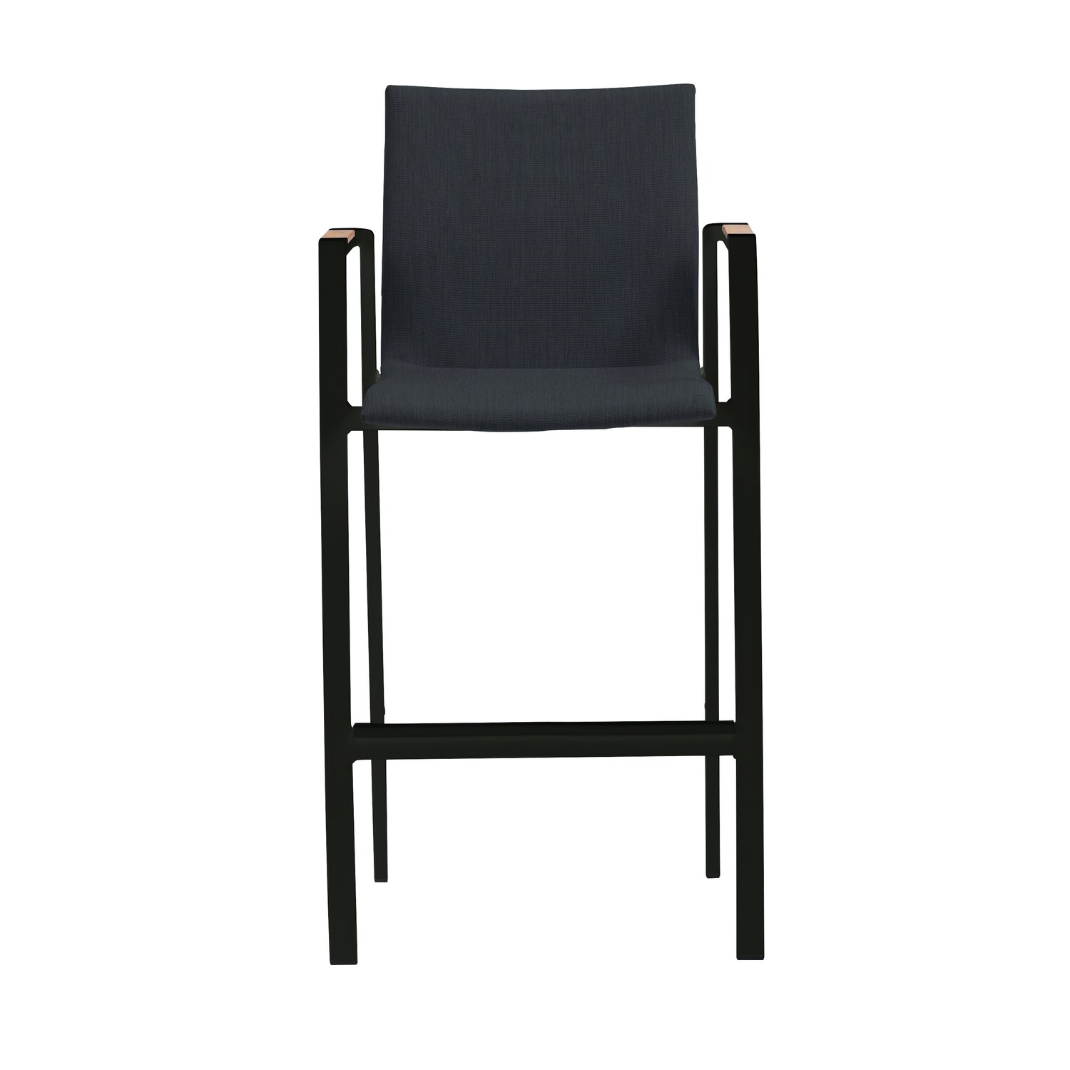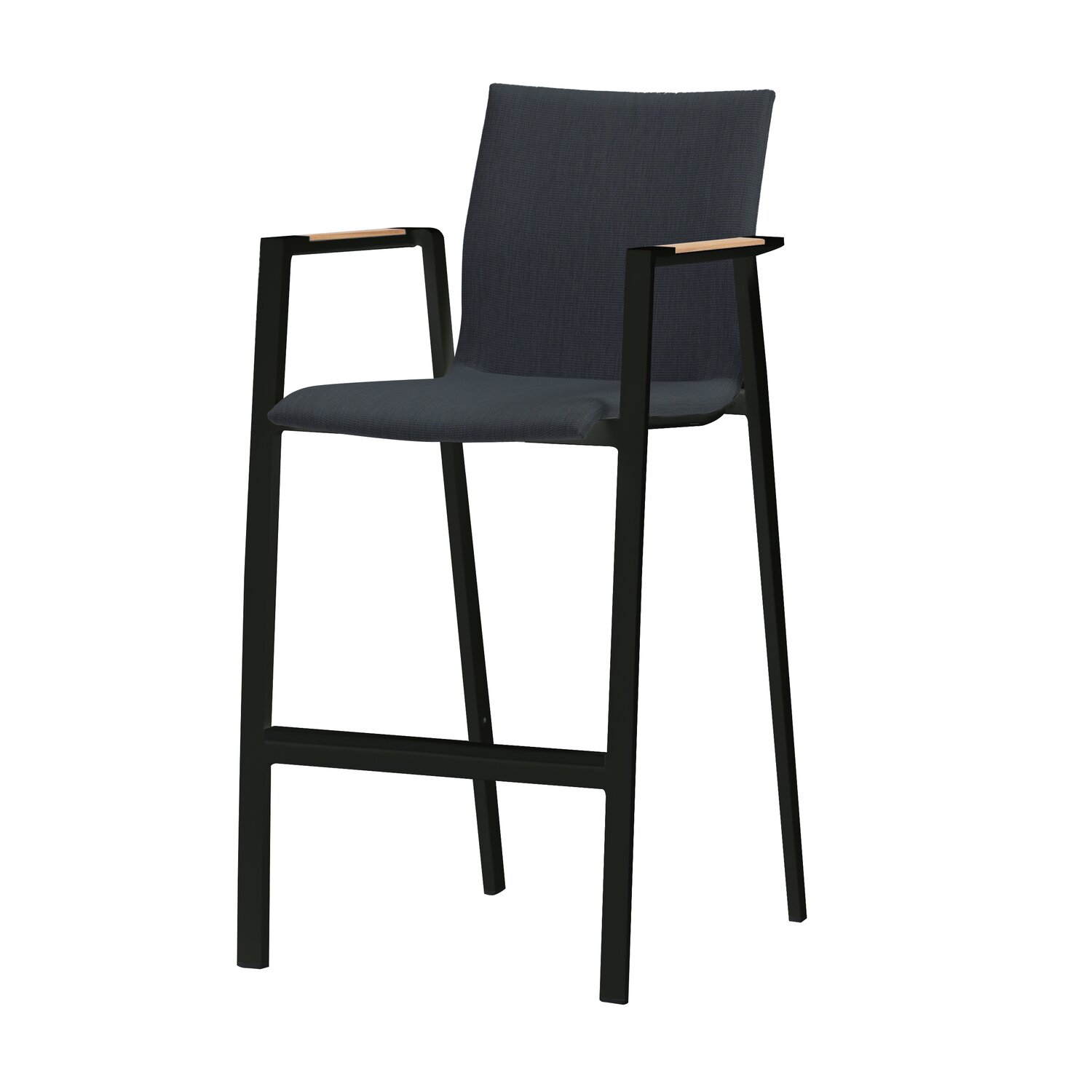 De zwarte kleur van het hoogwaardige aluminium frame straalt elegantie uit en past perfect bij diverse buitenomgevingen. De all-weather stof en vulling van de zitting en rugleuning maken deze barstoel bestand tegen alle weertypes, terwijl de teakhouten armleuningen een warme en natuurlijke touch toevoegen. De stoel past perfect bij de Royal Seasons Sol bartafel.