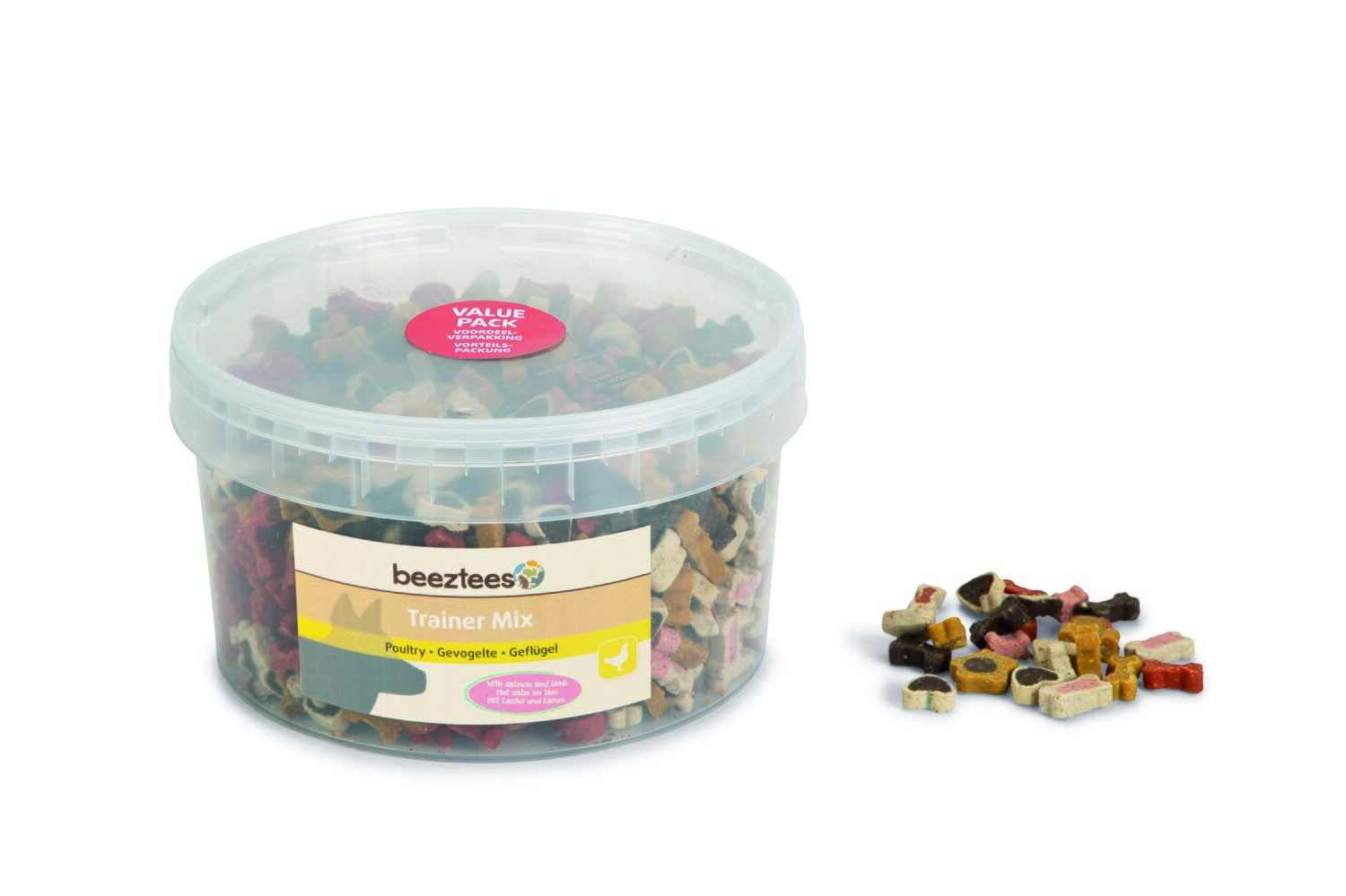 De Beeztees Trainer Mix betreffen biscuitjes speciaal ontworpen voor het trainen van je hond. Ze hebben een handzaam formaat en zijn ideaal om als beloning te geven wanneer je harige metgezel gehoorzaam is geweest. Deze lekkernijen zijn samengesteld uit kip en verrijkt met de smaak van zalm en lam.