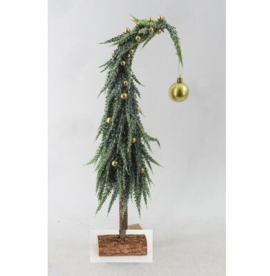 Miniboom op stam gouden bal/sneeuwfinish - H 45 cm