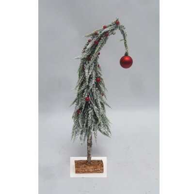 Miniboom op stam rode bal/sneeuwfinish - H 45 cm