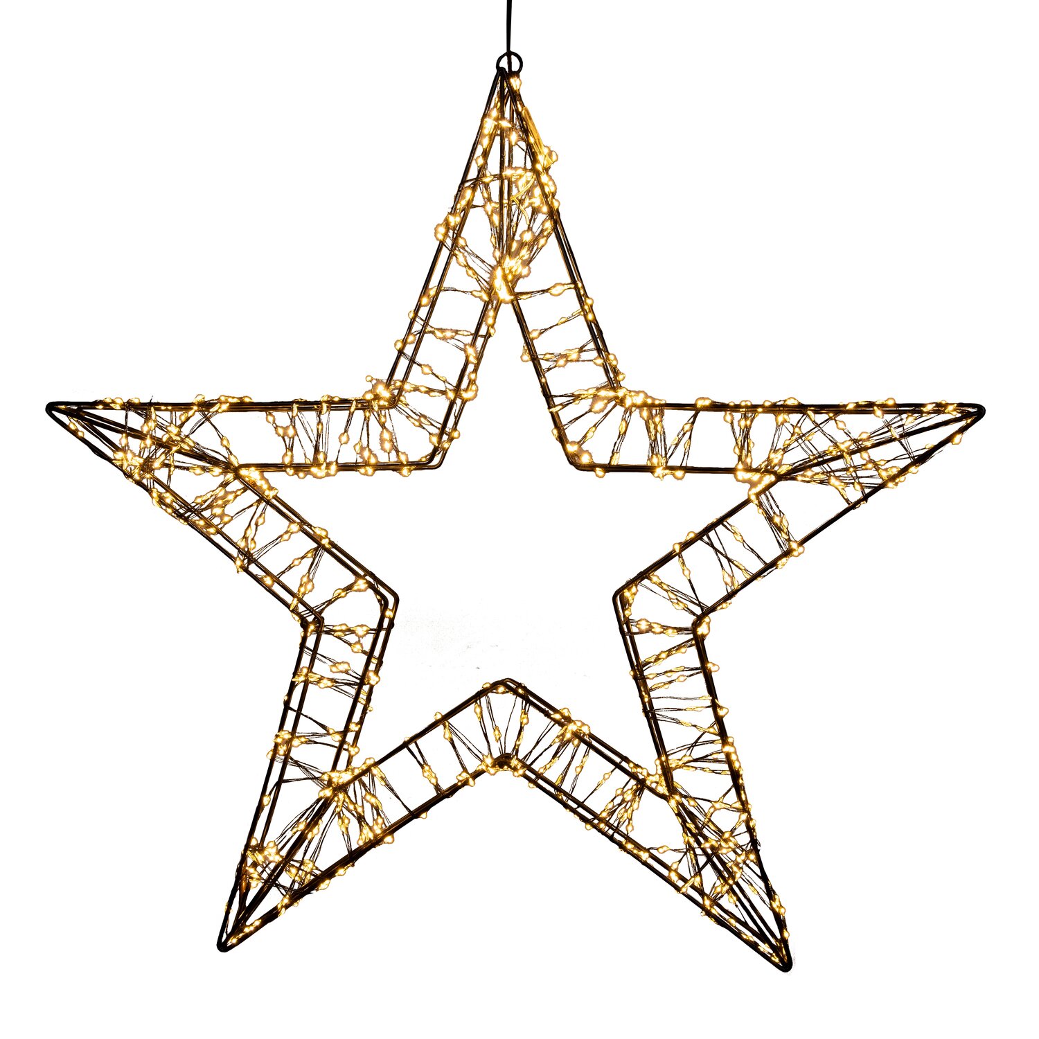 Deze metalen ster heeft een zwarte afwerking en is voorzien van casual wit LED-licht. Het formaat van 56 cm maakt de ster geschikt voor verschillende plaatsen in huis.