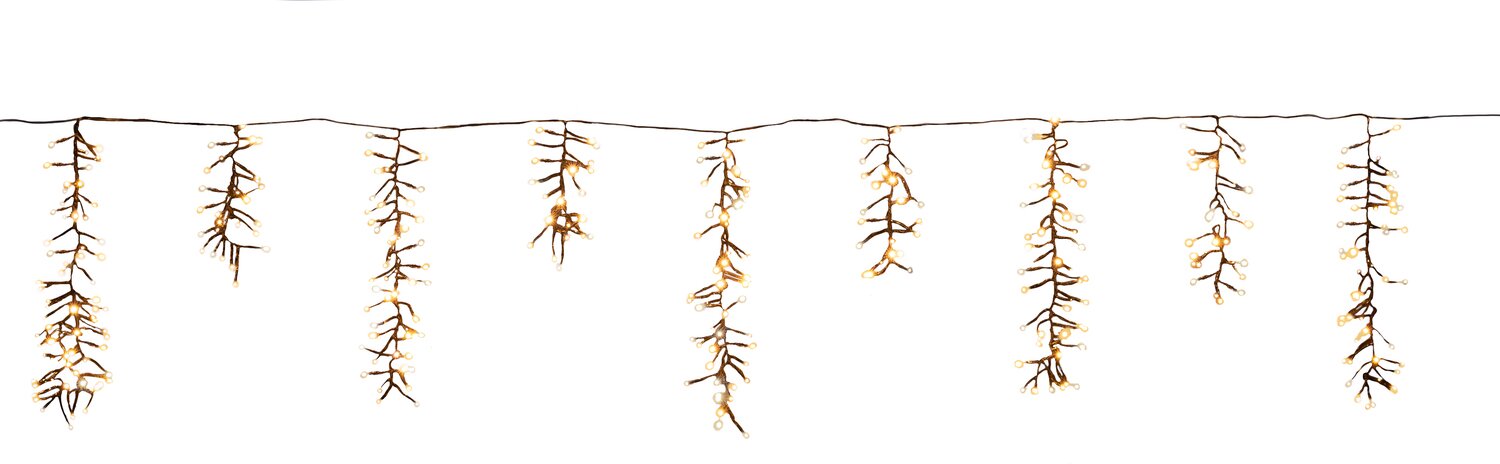 Deze ijspegelverlichting met 528 LED’s combineert twee lichtkleuren in een clusteropstelling voor een zacht wintereffect.