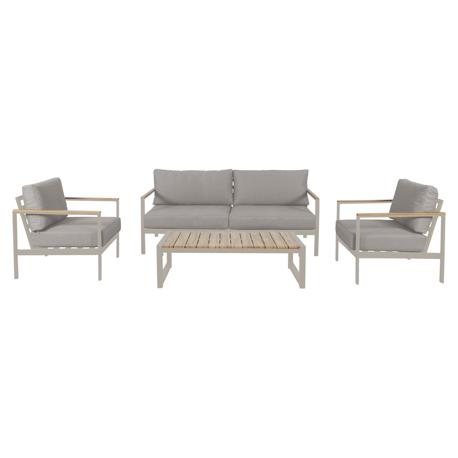 Deze sofaset is vervaardigd uit aluminium en heeft een stevig aluminium frame. Dit zorgt niet alleen voor een luxe uitstraling, maar ook voor een lange levensduur. Aluminium is gekozen vanwege zijn robuustheid en onderhoudsvriendelijkheid, waardoor je jarenlang kunt genieten van dit prachtige meubelstuk zonder veel inspanning.