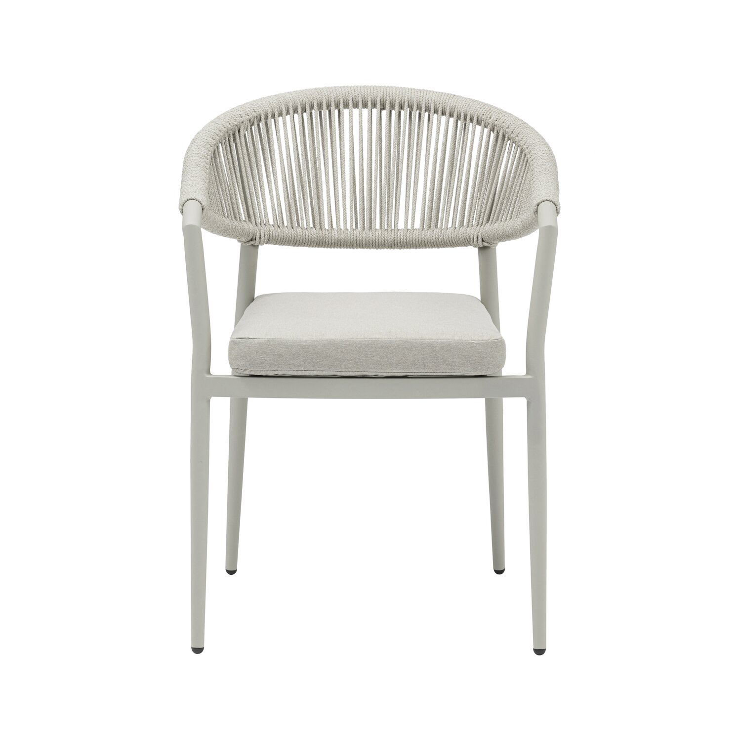 Ontdek een oase van comfort en stijl met de Bo dining stoel zand. Deze stoel biedt niet alleen een heerlijke zitervaring, maar het oog wil ook wat en daarom ziet deze stoel er ook nog eens super mooi uit! Het aluminium frame zorgt voor een stevige stoel, terwijl het geweven touw en het zachte kussen zorgen voor een comfortabele zit.