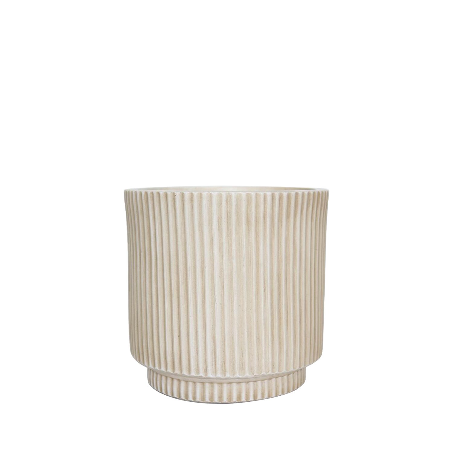Wil je subtiel groen toevoegen aan je buitenruimte? De Pot Stripes Raised Fibre Clay D 24 x H 24 cm Beige is perfect voor kleine hoekjes op je terras of balkon. Met zijn neutrale kleur en subtiele reliëfstructuur past deze pot in iedere stijl, van modern tot landelijk.
