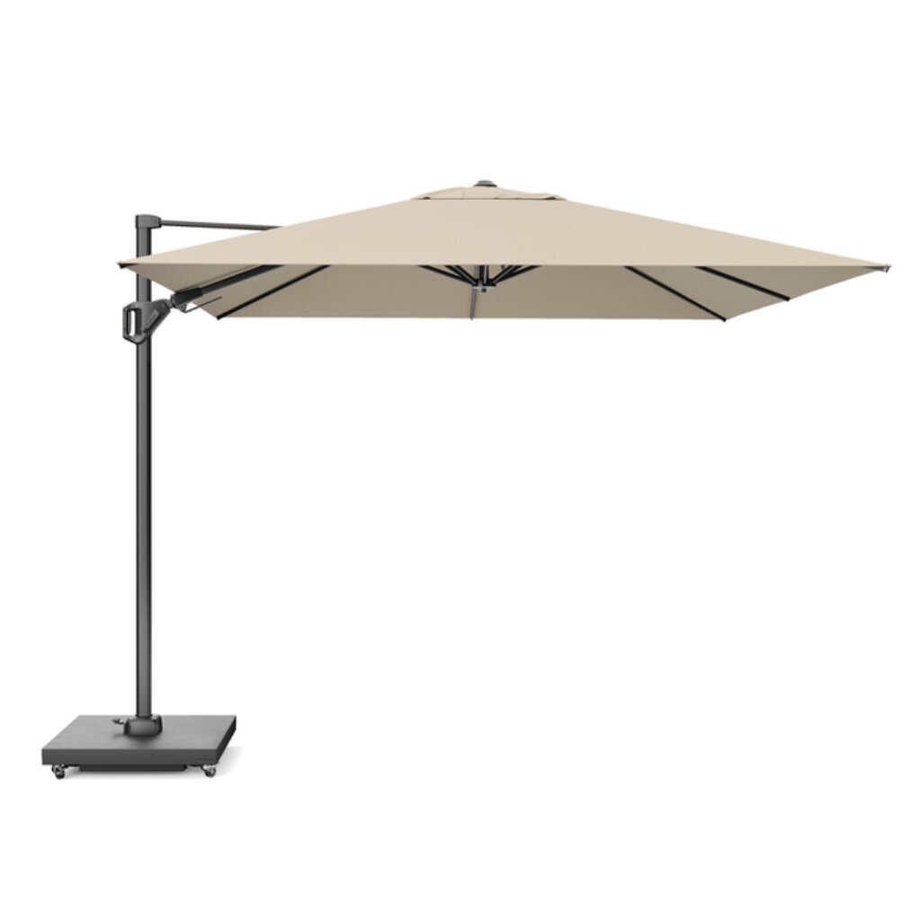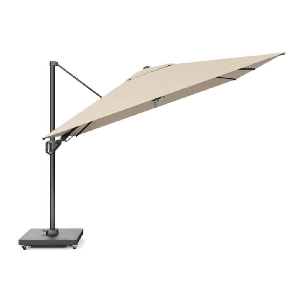 Zweefparasol Challenger T¹ Premium 400x300 champagne. Modern design. Uiterst stabiel. Achterwaarts kantelbaar. 360° draaibare voet. Premium doek.