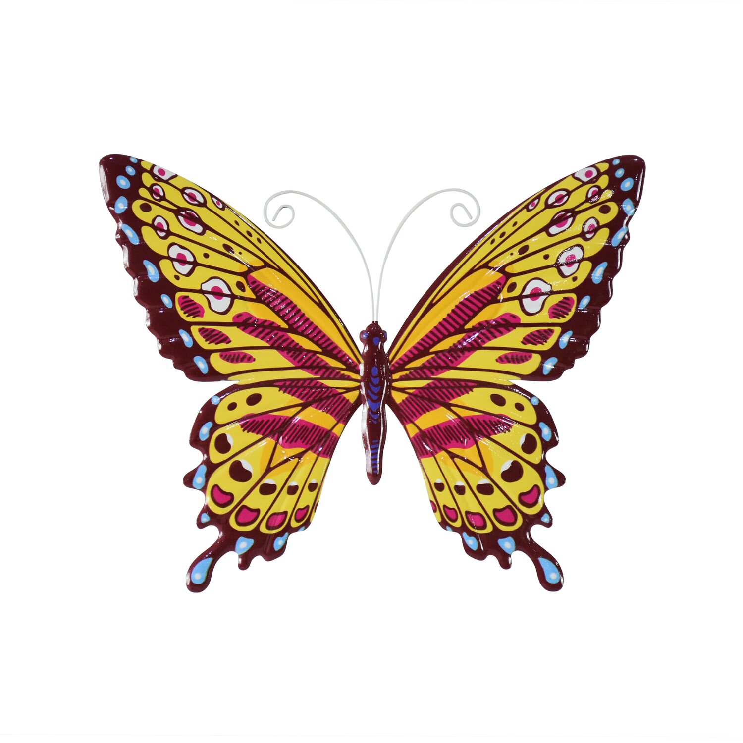 Muurdeco vlinder 35,5 x 0,5 x 28,5 cm geel/rood