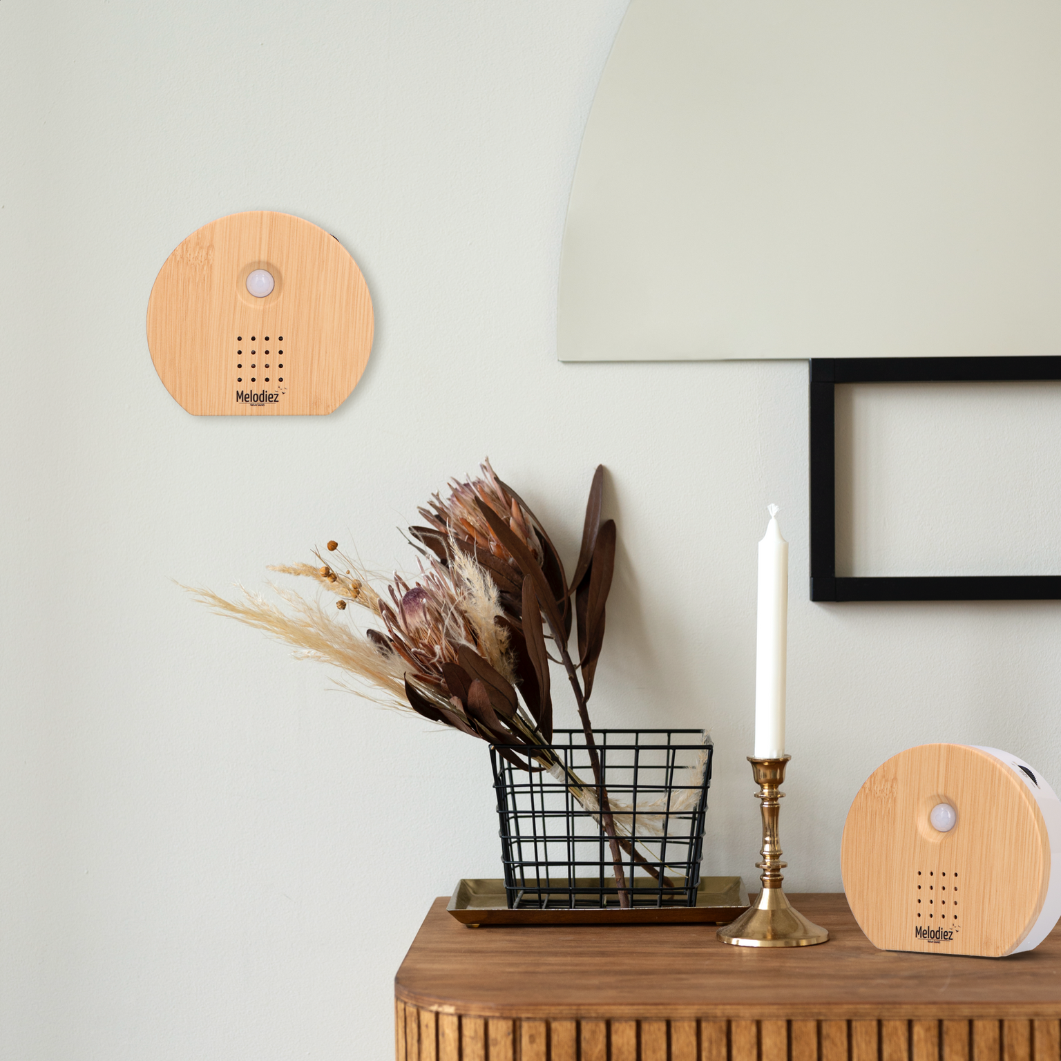 Verkrijgbaar in zes verfijnde afwerkingen – wit, hout, donker hout, natuursteen, marmer en zwart – past de Melodiez Nature Box moeiteloos in elk interieur. Door het compacte formaat (10 x 9 cm) en tijdloze design is het een subtiele blikvanger én geluidsbron in één. De box heeft een touchknop om te kiezen uit drie afspeelperiodes van 40, 80 of 120 seconde.