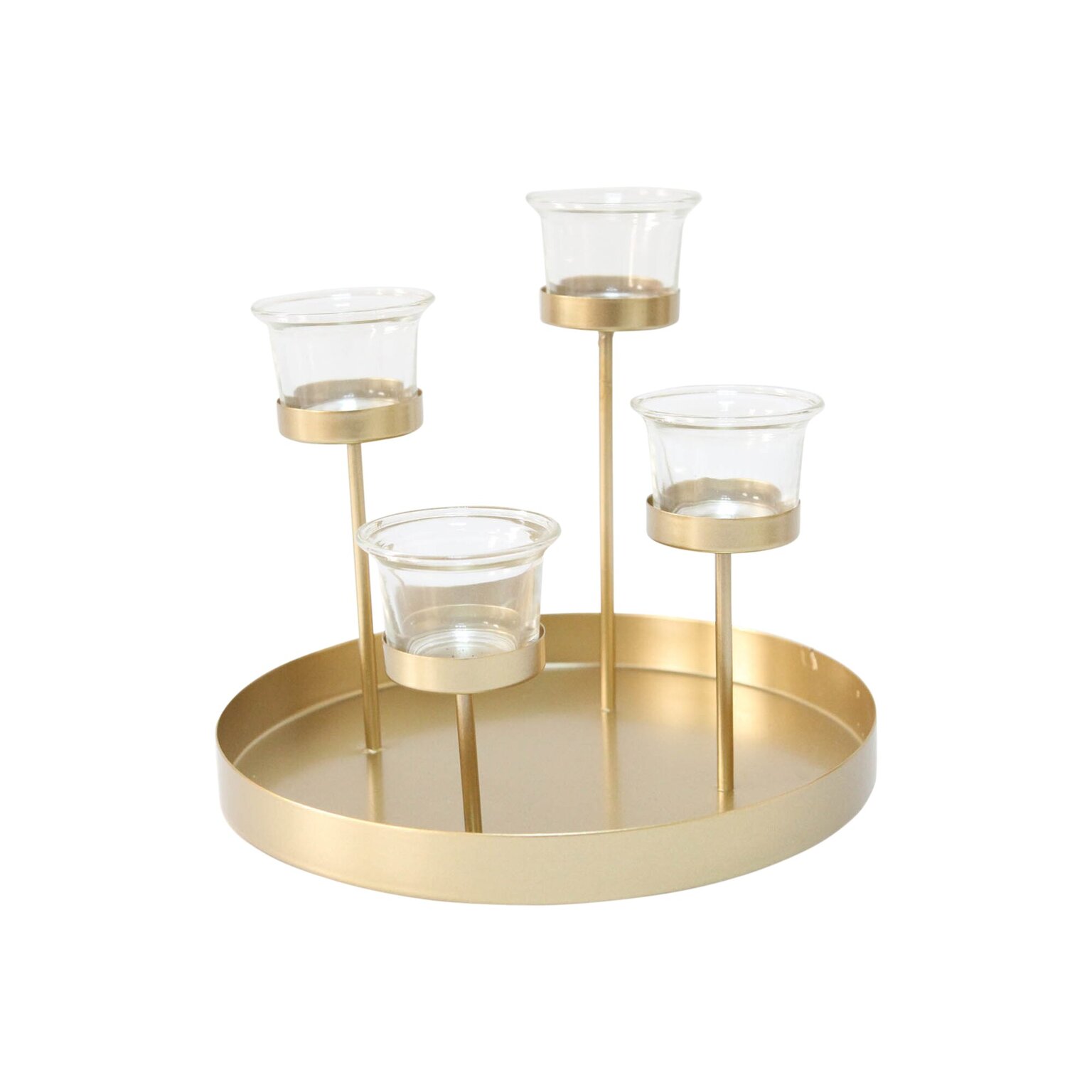 Met dit stijlvolle dienblad (Ø 23 × H 16 cm) in goud combineer je elegantie met functionaliteit. Ideaal als theelichthouder of als basis voor decoratie.