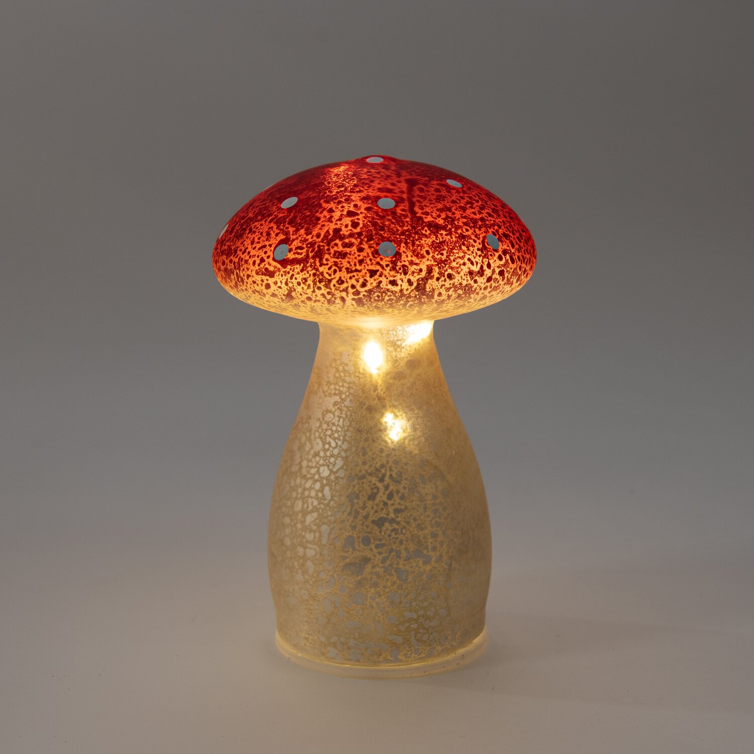 Deze compacte paddenstoel met rode kop en witte stippen is ideaal als klein accent tussen grotere decoraties of op dienbladen.