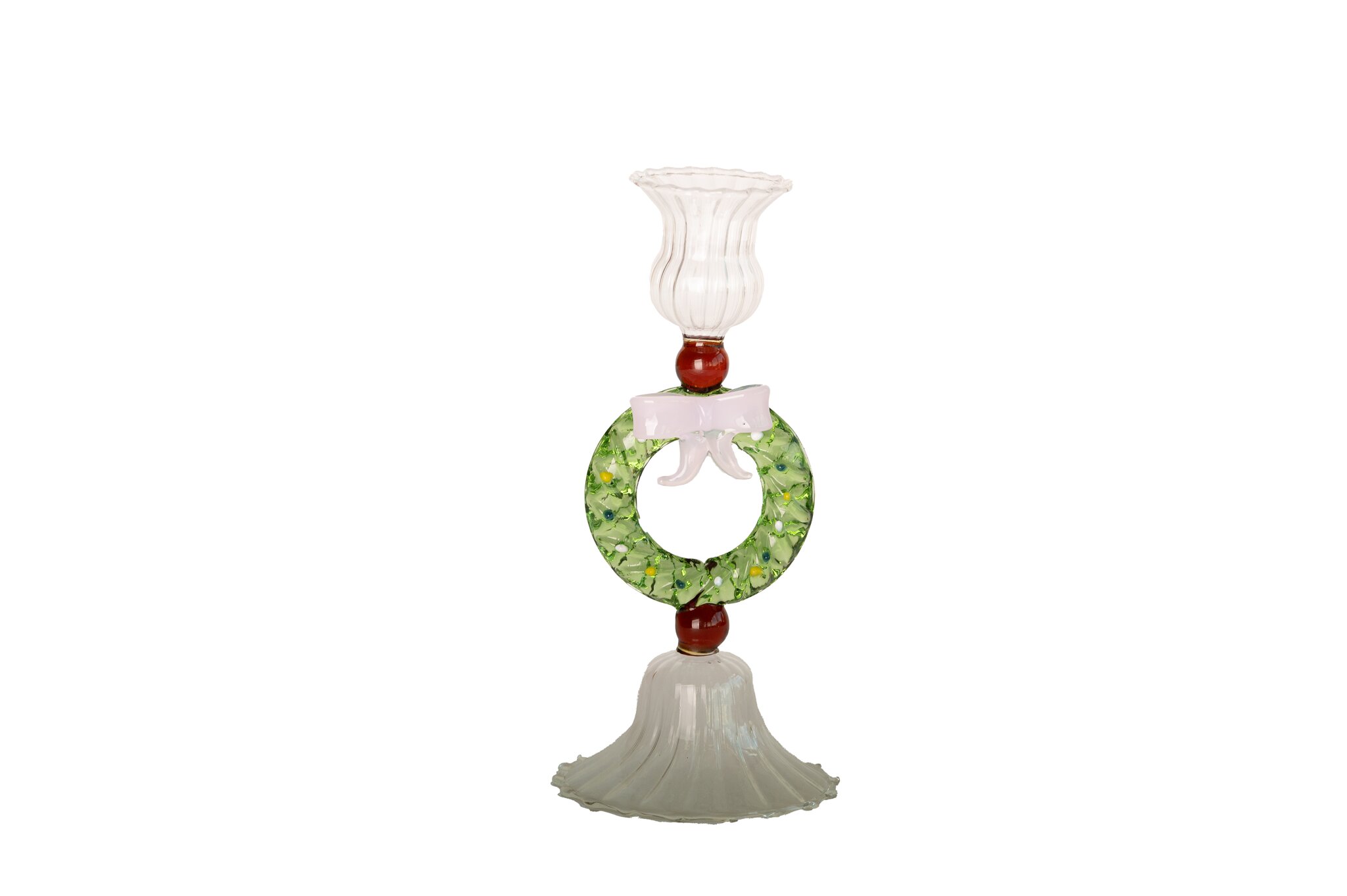 Kandelaar glas 'Krans' D 8 x H 20 cm transparant/groen