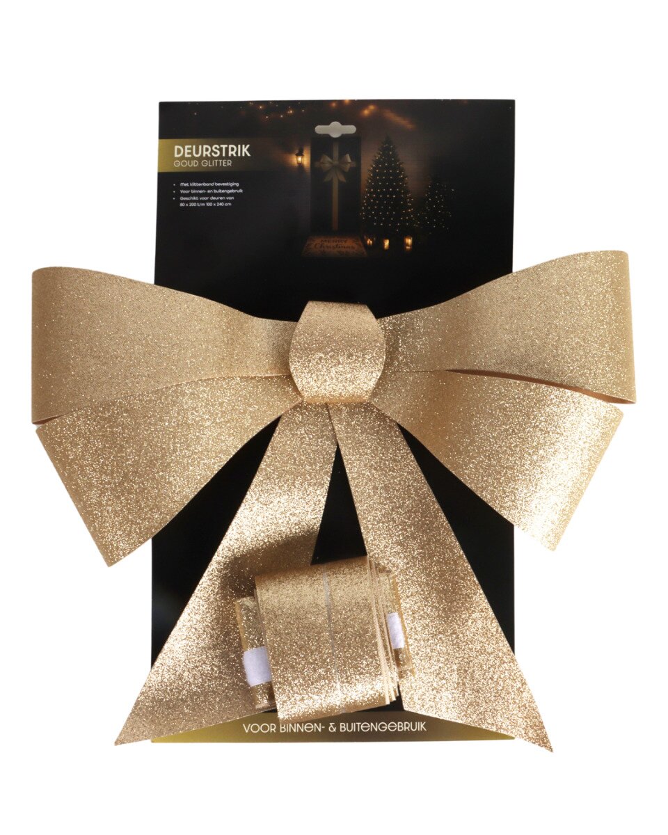 Met de Deurstrik goud geef je je interieur of entree direct wat glamour. Een stijlvolle en praktische keuze om je deur om te toveren tot een feestelijk middelpunt tijdens de kerstdagen.