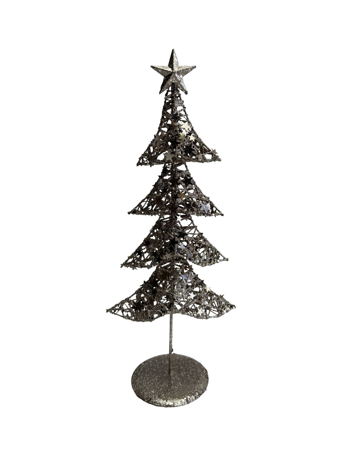 De Glitter boom 3D H 40 cm champagne is een sierlijke kerstdecoratie in een klassiek boomontwerp met moderne glitterlook. De driedimensionale vorm zorgt ervoor dat hij van alle kanten straalt, perfect voor op tafel, een dressoir of in de vensterbank.