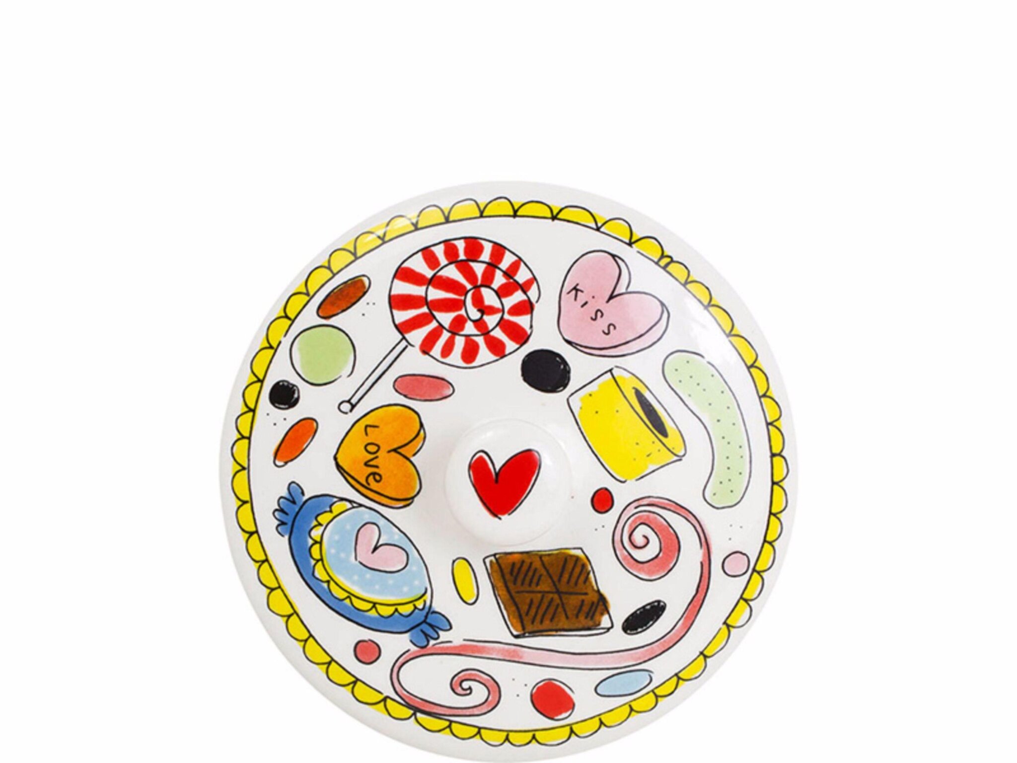 Vrolijke voorraadpot met roze rand en kleurrijke illustraties in de kenmerkende Blond Amsterdam stijl.