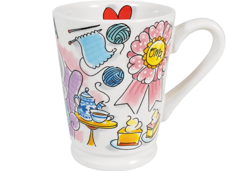XL oma-beker met vrolijke print.