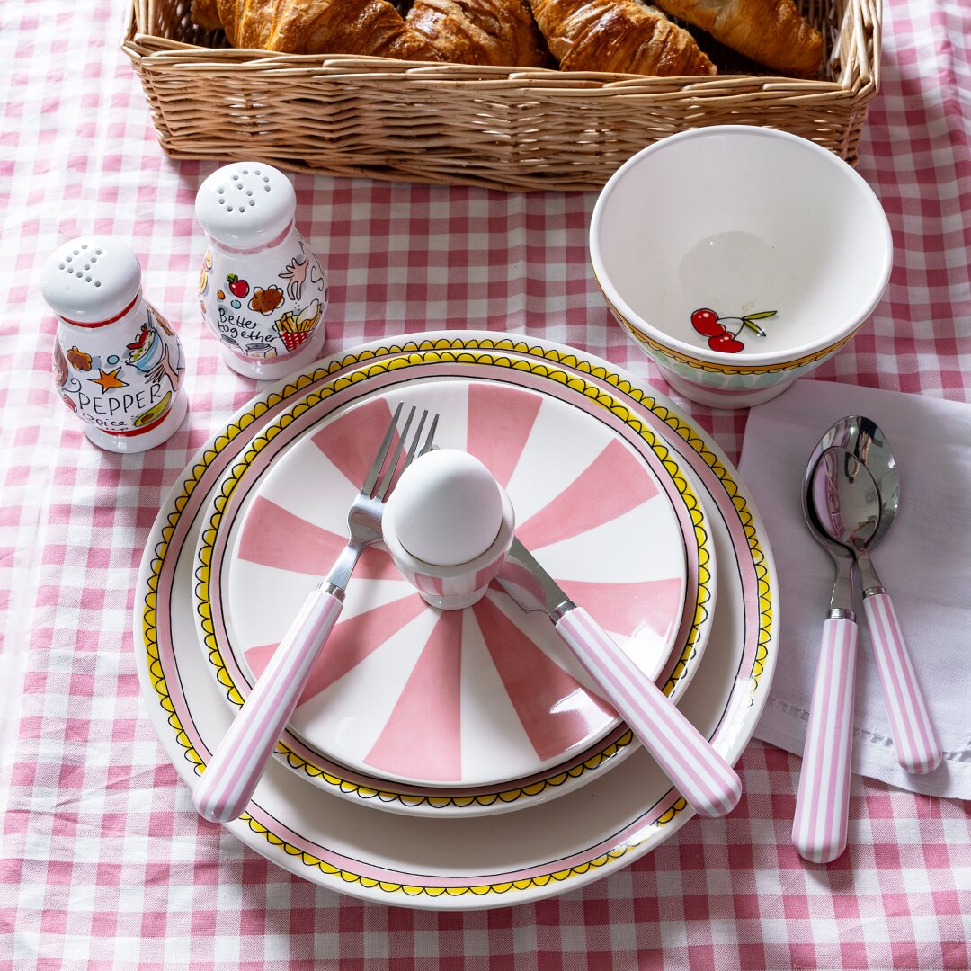 Maak je eettafel compleet met de Bestek Set Pink van Blond Amsterdam. Met een roze theelepeltje, mes, vork en lepel uit de Even Bijkletsen-collectie wordt theedrinken, ontbijten, lunchen en dineren nét even leuker.