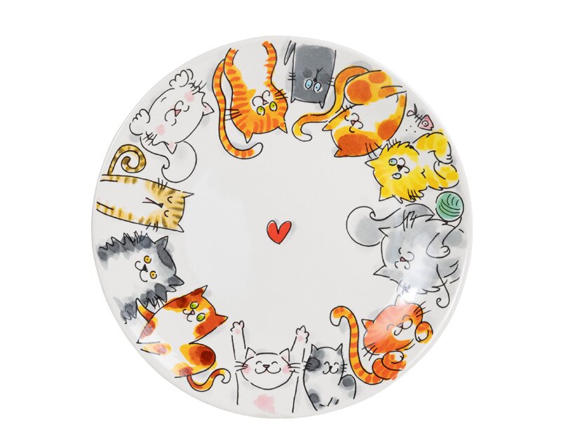 Vrolijk ontbijtbord vol kattenillustraties. Perfect cadeau voor catlovers.