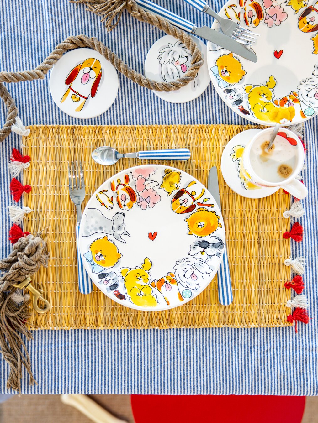 Of je nou team teckel, fan van de Franse bulldog of helemaal gek bent op je golden retriever: dit vrolijke hondenbord is een ode aan jouw trouwe maatje. Met een bonte verzameling blije snuiten, slingerstaarten en dat kenmerkende rode hart in het midden is dit 22 cm bord hét perfecte cadeau voor elke dogmom of dogdad.