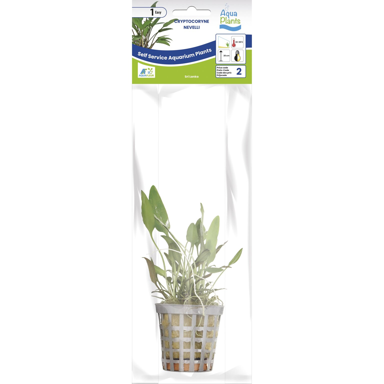 Cryptocoryne zijn de bekendste voorgrond planten. Deze soort heeft een groengekleurd lancetvormig gesteeld blad. De plant vormt uitlopers. Bij veel licht groeien de bladeren breed uit, bij weinig licht blijven ze rechtopstaand.