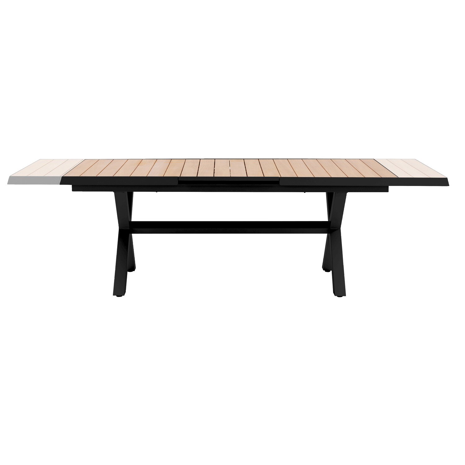 Dankzij het soepele uitschuifmechanisme verleng je de tafel eenvoudig van 204 naar 264 cm. Dit maakt hem ideaal voor grote gezelschappen, feestelijke tuinmomenten of simpelweg voor extra ruimte bij een uitgebreide borrelplank. De tafel blijft stabiel, stevig en comfortabel, zowel ingeschoven als volledig uitgeschoven.