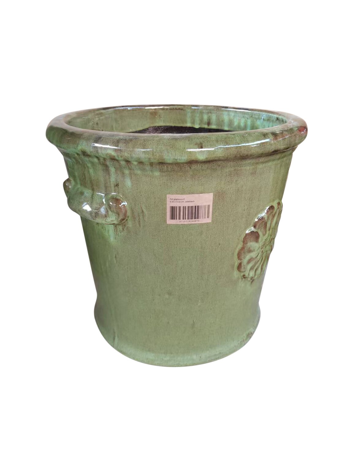 - Technische kenmerken: geglazuurd, rond model, decoratief reliëf en siergrepen