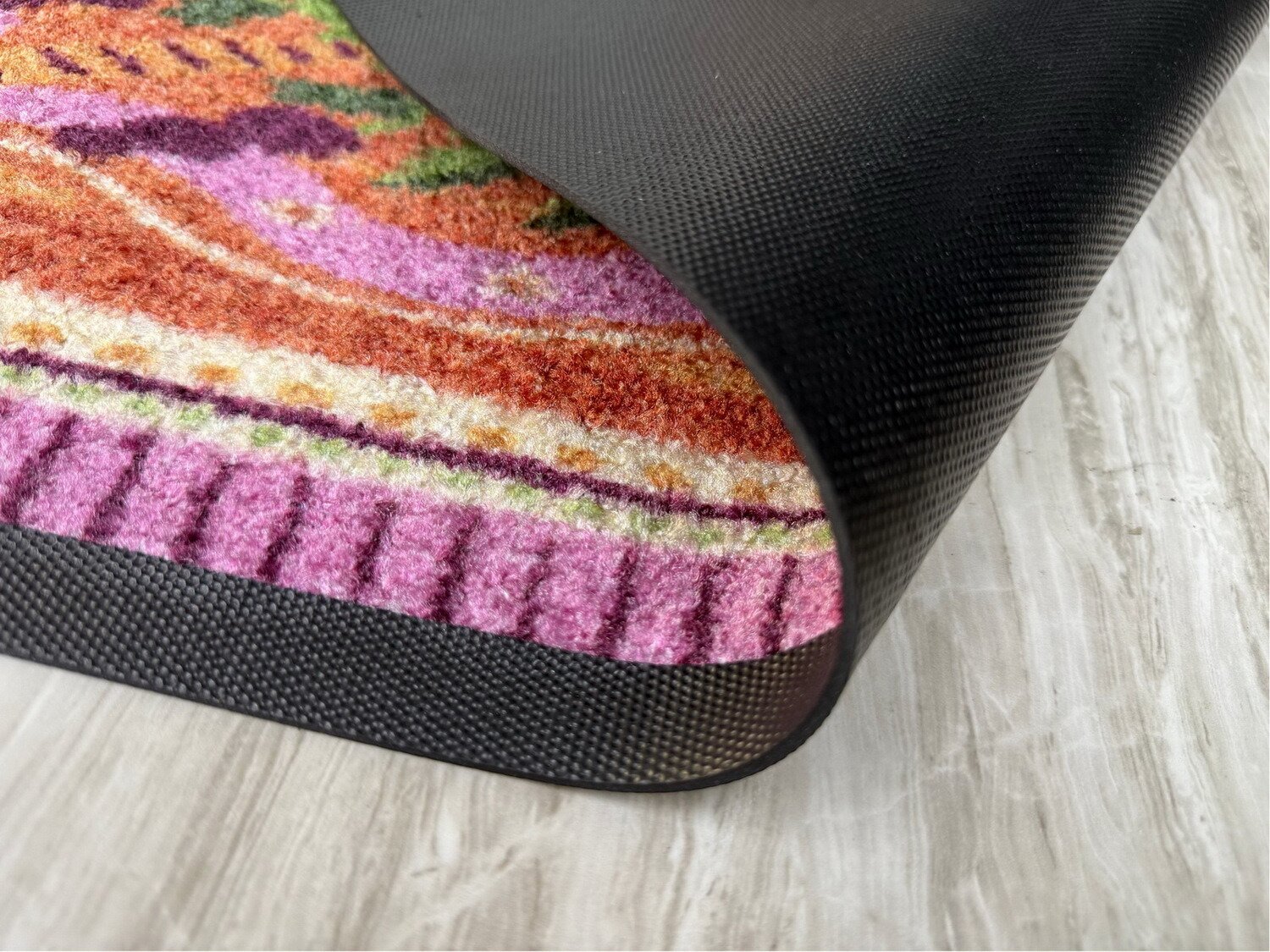 - Materiaal: 100% nylon, achterkant rubber
