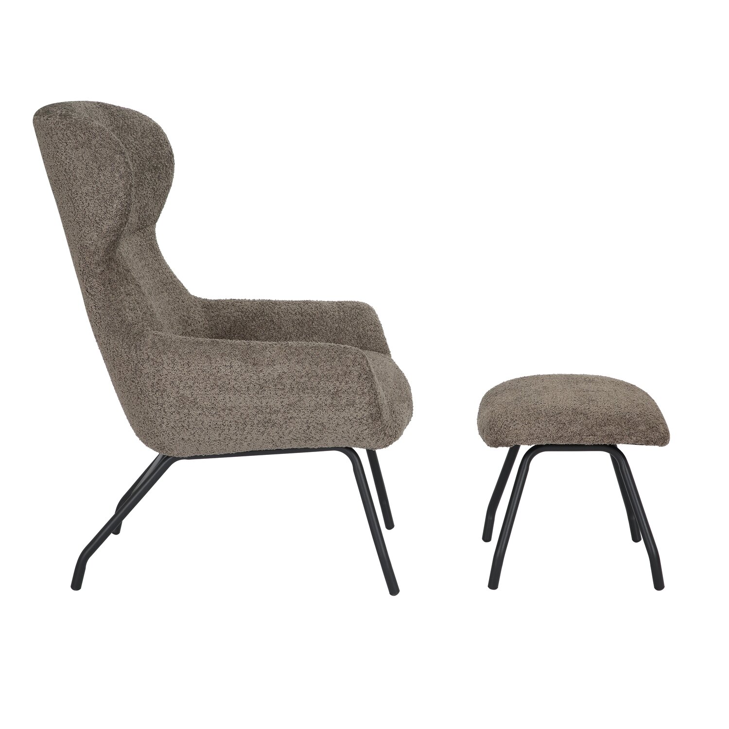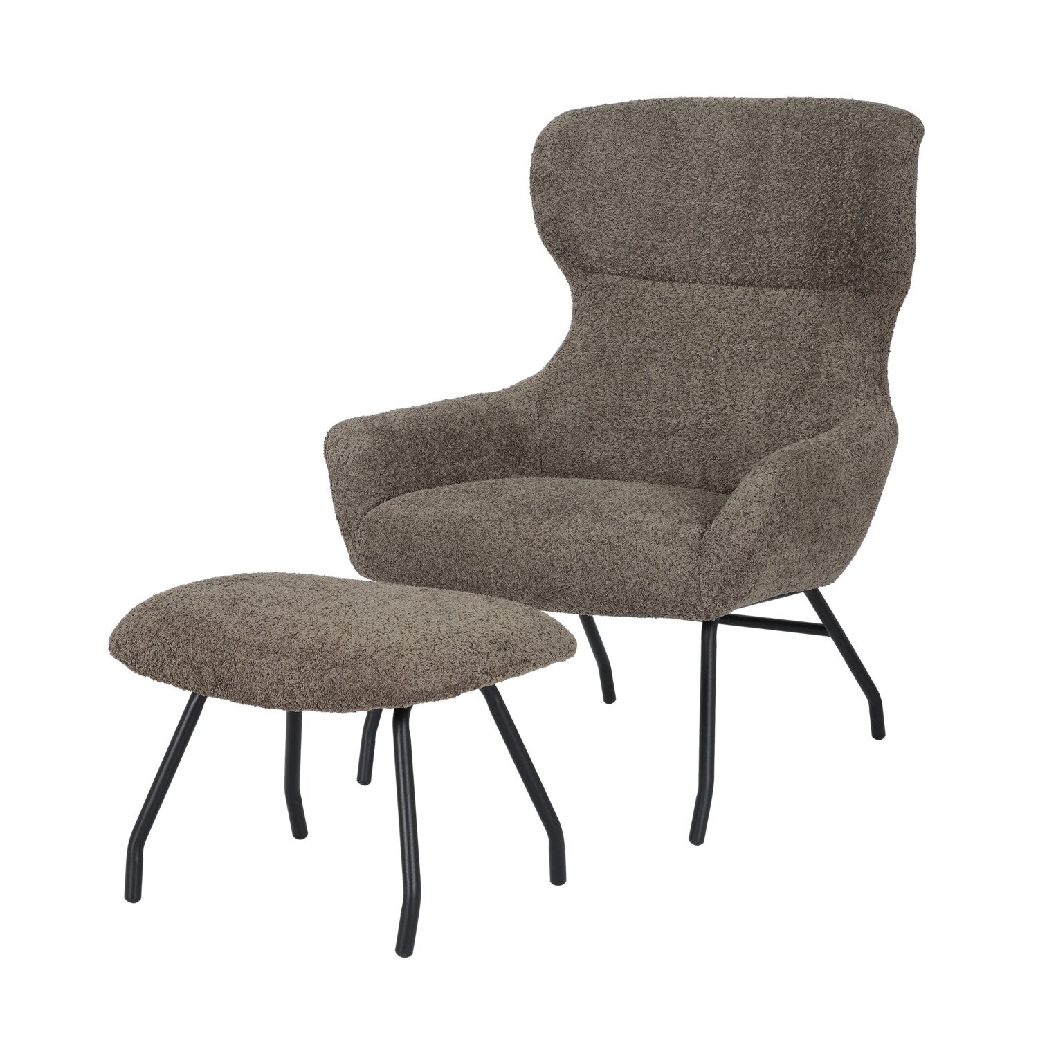 24Seven® Loungestoel Pablo met voetbankje bouclé taupe