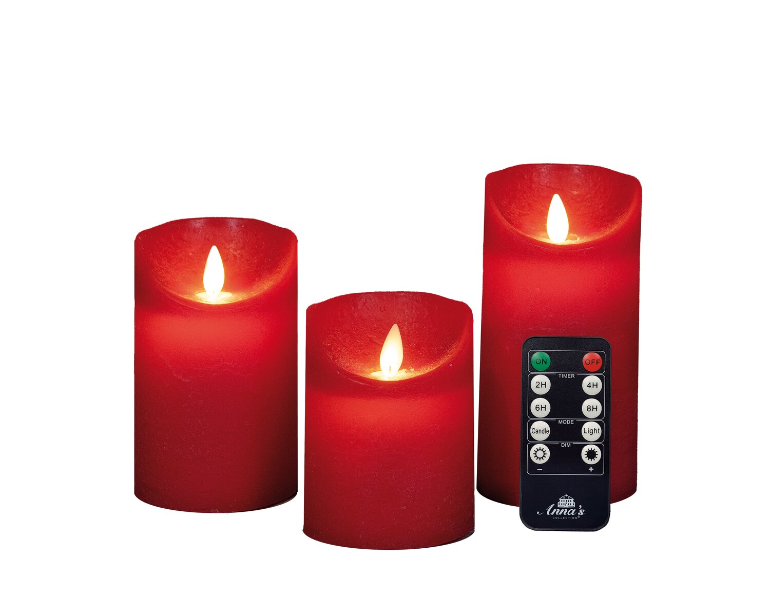Anna’s Collection 3st. LED Rustiek wax stompkaars Rood - Ø 7,5 x H 10/12,5/15 cm