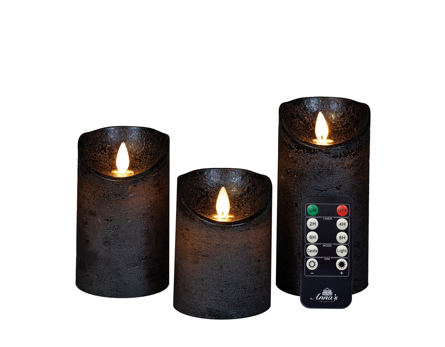 Anna's Collection 3-pack kaars antraciet – set van 3 hoogtes
