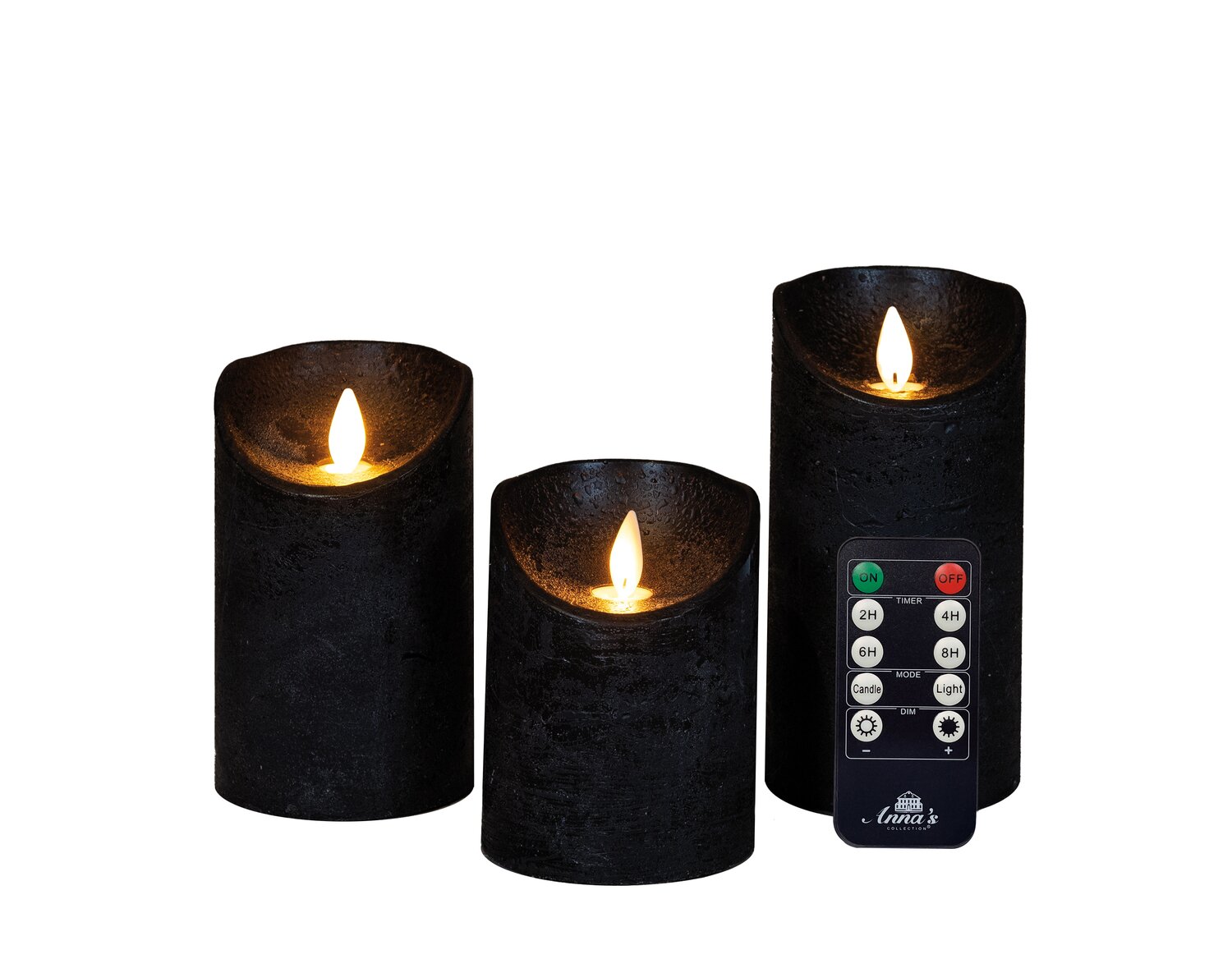 Anna's Collection 3-pack kaars zwart – set van 3 hoogtes