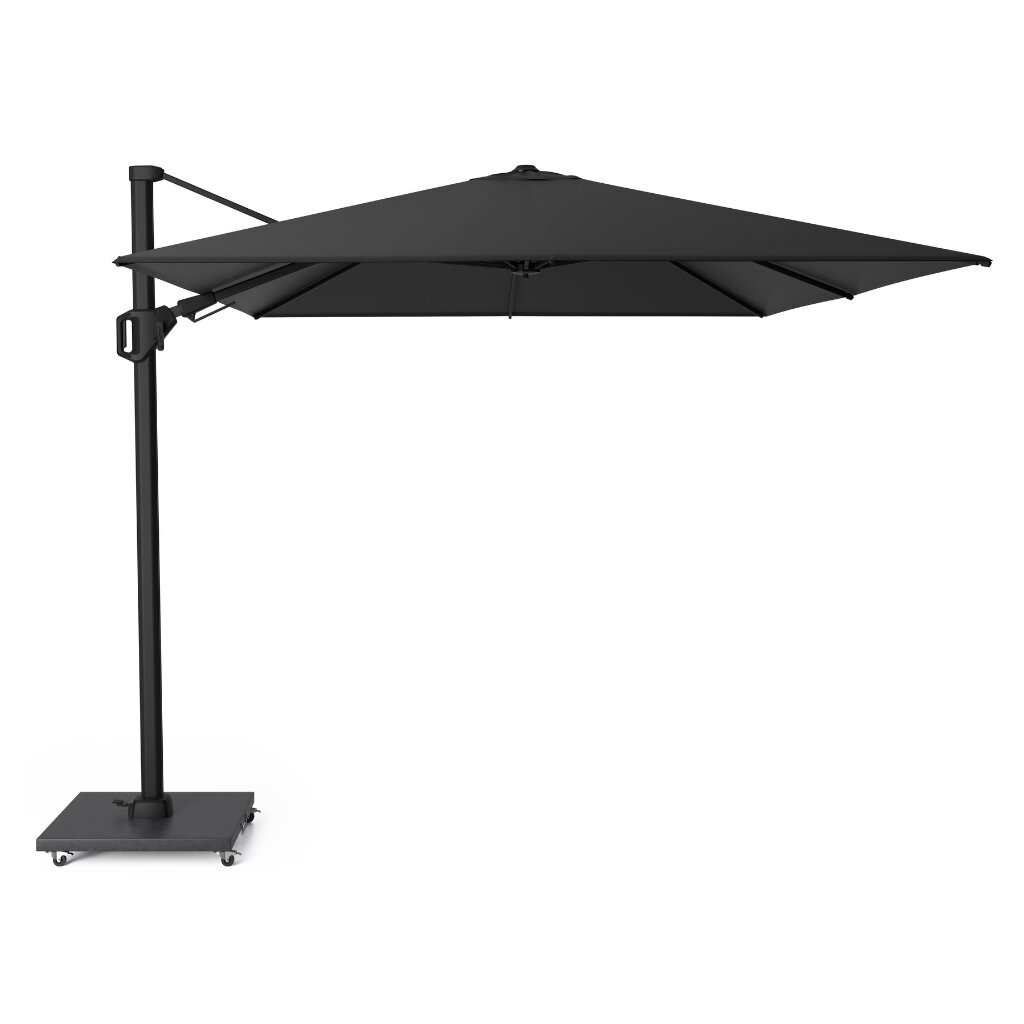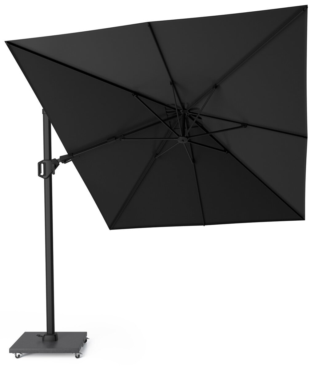 Zweefparasol Challenger T² Premium 350x260 Jet Black. Uiterst stabiel. Eenvoudig in gebruik. Achterwaarts en zijwaarts kantelbaar. 360° draaibare voet. Premium doek.