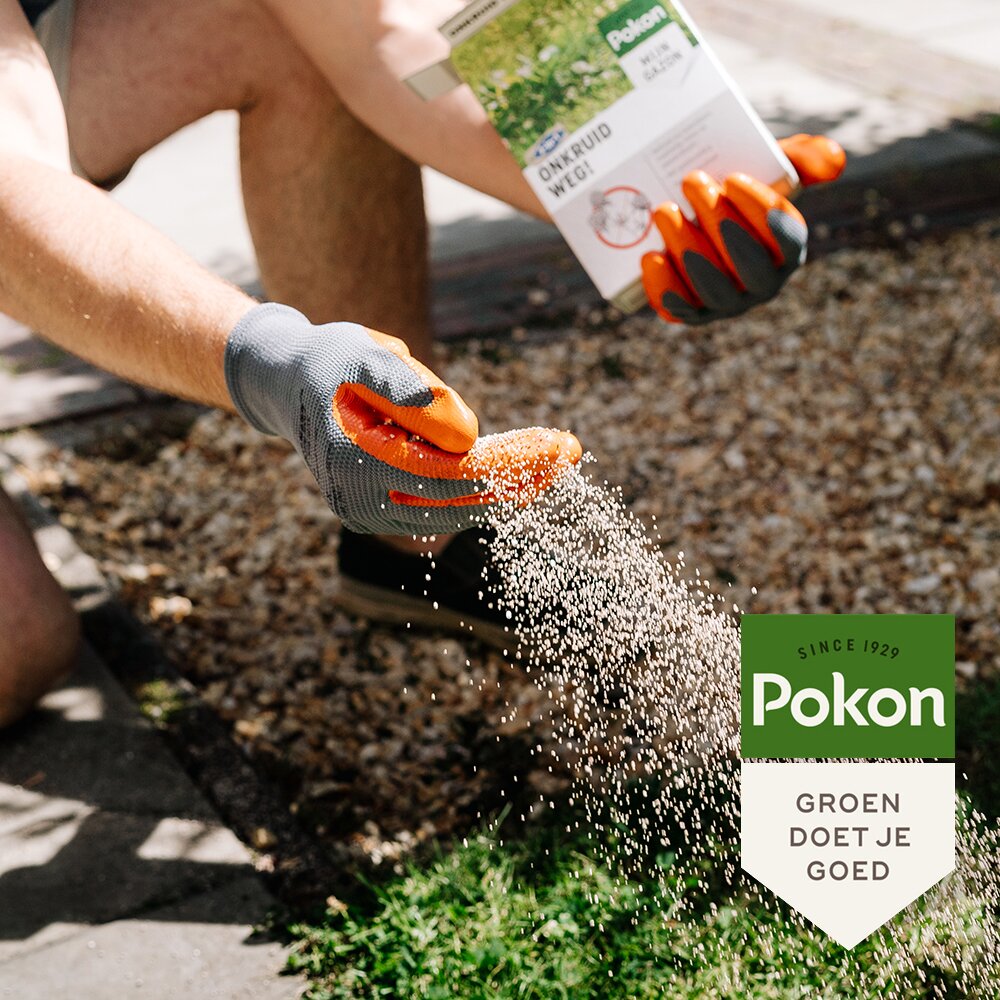 Last van onkruid in je gazon? Pokon Onkruid Weg! is een effectieve manier om dit probleem op te lossen. Met deze onkruidbestrijder, die bovendien gazonmest bevat, wordt onkruid snel verwijderd en je gazon direct gevoed. De werkzame stoffen in dit product veroorzaken een oncontroleerbare groei van onkruiden. De bladeren gaan opkrullen en uiteindelijk verwelkt en sterft het onkruid af tot in de wortel. Het gras van de behandelde plekken kan door de aanwezige meststof ook sneller gaan groeien, waardoor er mogelijk kleurverschil kan ontstaan. Het kleurverschil verdwijnt in de loop van tijd. De essentiële voedingsstoffen in deze gazonmest zorgen ervoor dat je gazon beter bestand is tegen onkruid. Onkruid kun je het beste behandelen in de periode maart t/m september. Voor een optimale behandeling is het belangrijk dat de grond niet is bevroren, dat er geen zware regen wordt verwacht en dat de buitentemperatuur niet te hoog is (het gras kan verbranden). Maai het gazon de eerste 4 dagen na toepassing niet.