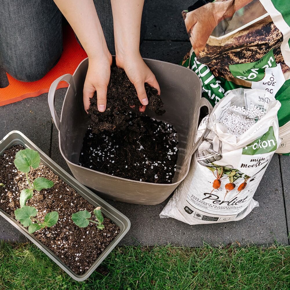Mengen met potgrond: meng 1 deel perliet met 3-4 delen potgrond goed door elkaar. Je zult zien dat de grond een stuk lichter en luchtiger wordt. Bijkomend voordeel is dat de drainage wordt verbeterd en wortels beter kunnen ontwikkelen. Drainage: Breng een laag van enkele centimeters perliet aan onderin de pot. Ga uit van ongeveer ¼ van de pothoogte. Vul daarna de pot met potgrond. Bij grote hoge potten kan uit oogpunt van gewichtsbesparing meer perliet in de pot gedaan worden, mits de plant voldoende potgrond heeft om te kunnen wortelen.