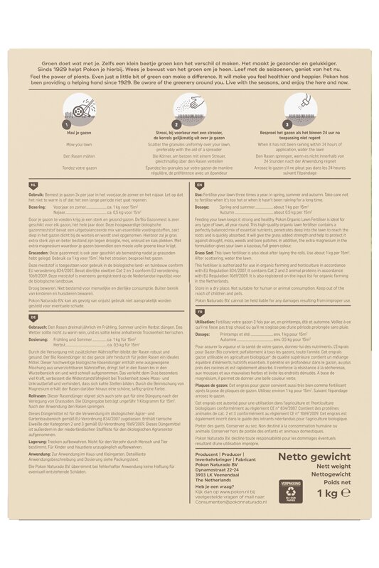- Fertilizer Type DescriptionPokon Bio Gazonmest 15m2