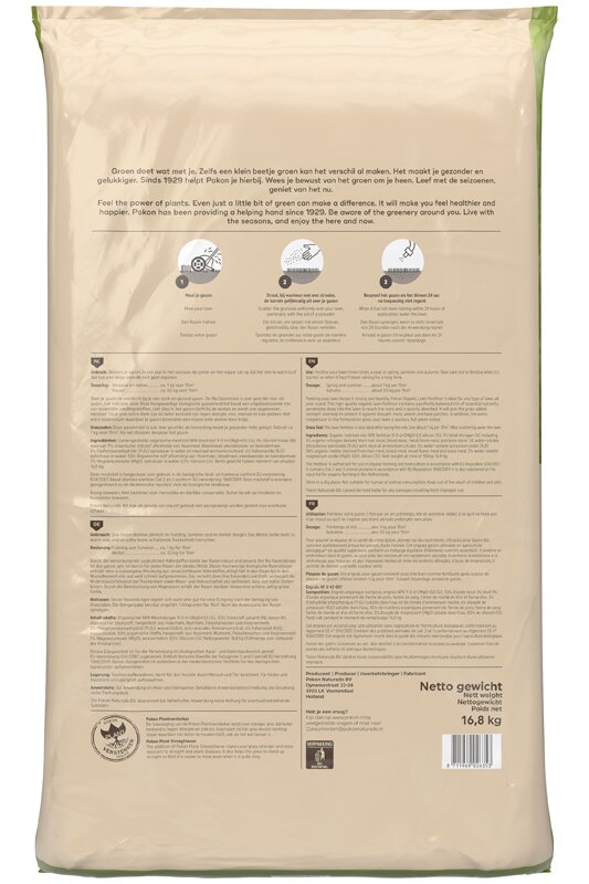 Pokon Bio Gazonmest is zeer geschikt voor elk gazon, het hele jaar door. Deze hoogwaardige biologische gazonmeststof bevat een uitgebalanceerde mix van essentiële voedingsstoffen, zakt diep in het gazon dicht bij de wortels en wordt snel opgenomen. Hierdoor zal je gras extra sterk zijn en beter bestand zijn tegen droogte, mos, onkruid en kale plekken. Met extra magnesium waardoor je gazon bovendien een mooie volle groene kleur krijgt. Toevoeging van Pokon Plantversterker zorgt voor steviger gras dat beter bestand is tegen droogte en ziektes. Daarnaast zal het gras mooier rechtop staan waardoor het beter te maaien blijft, ook het wat langer is.