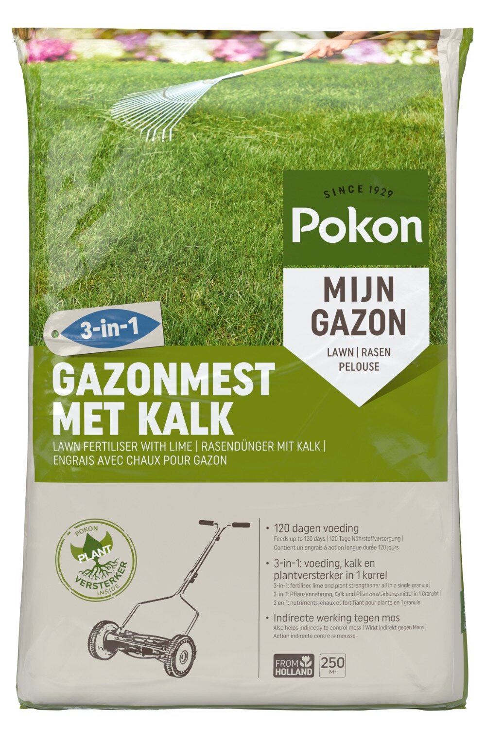 Pokon Gazonmest met Kalk 3-in-1 is zeer geschikt voor elk gazon, het hele jaar door. Deze hoogwaardige gazonmeststof op basis van organisch-minerale meststoffen bevat een uitgebalanceerde mix van essentiële voedingsstoffen. Uniek is de toegevoegde kalk in de korrel. In plaats van apart kalk en voeding te strooien ben je met deze gecombineerde korrel dus in 1 keer klaar. Met extra magnesium en ijzer waardoor je gazon bovendien een mooie volle groene kleur grijgt. Door het hoge kaliumgehalte wordt je gazon sterker, heb je minder last van mos en krijgt het gras meer weerstand tegen vorst in de winter.