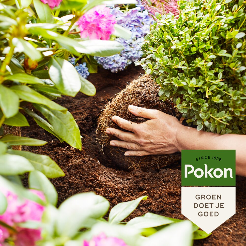 Deze Pokon Bio Aanplantgrond voor Zuurminnende Planten is ideaal voor het aanplanten van zuurminnende planten zoals de rododendron, ilex, hortensia, magnolia, azalea, camelia en acer in je border. Er zit voldoende organische voeding in voor ca. 100 dagen. De toevoeging van Pokon Plantversterker in deze potgrond zorgt voor sterke wortels van planten en verhoogt zo de weerstand. Hierdoor worden planten beschermd tegen ziekteverwekkende schimmels en houden we gezonde planten, zodat er minder gewasbeschermingsmiddelen nodig zijn.