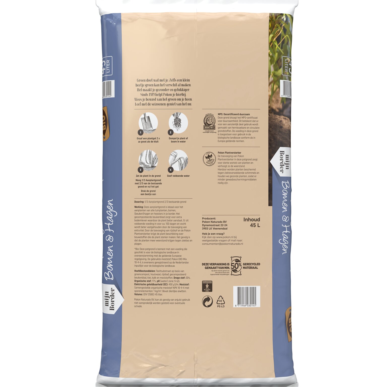 Pokon Bio Aanplantgrond Tuinplanten, Bomen & Hagen 45L