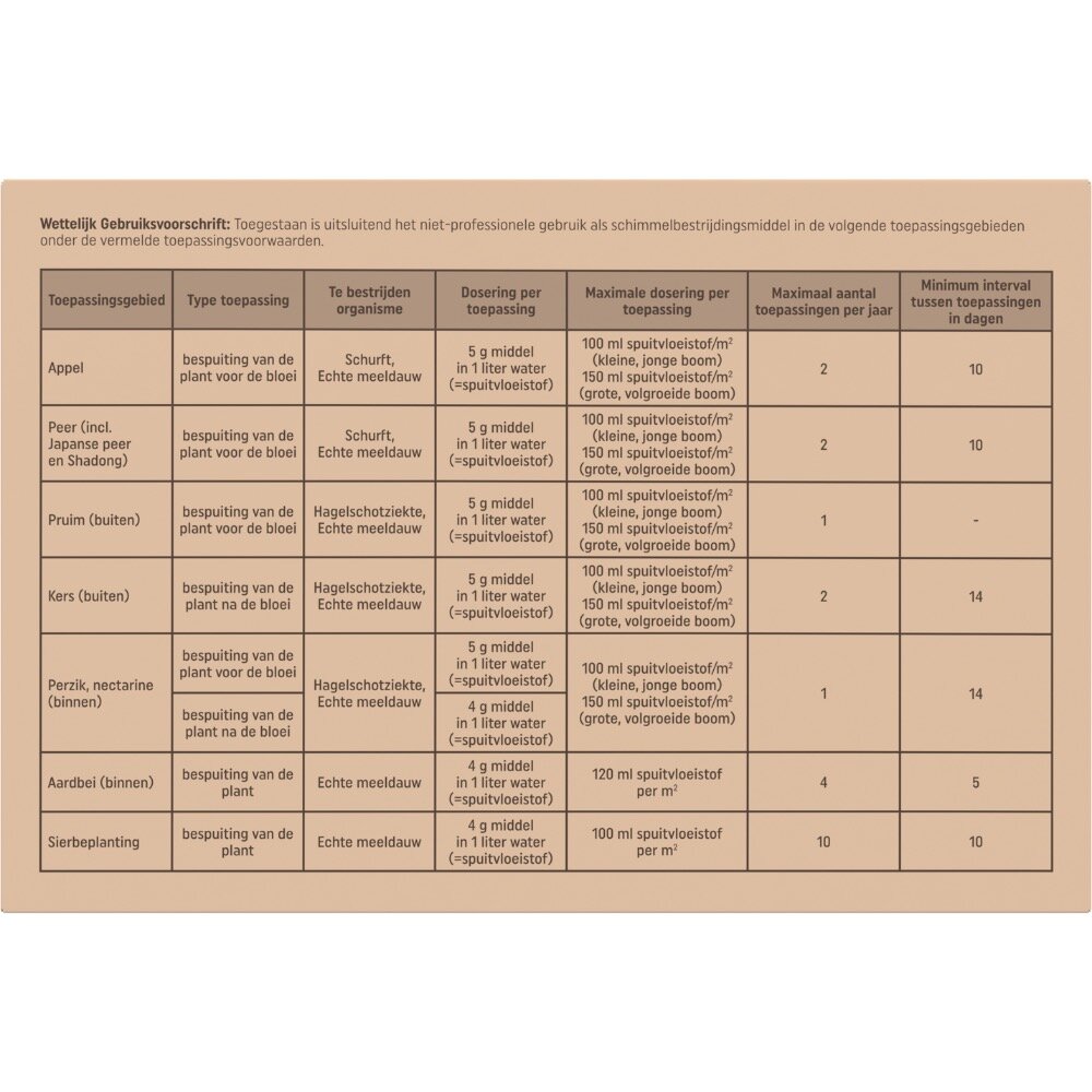 - Spuitzwavel voor bestrijding van o.a. meeldauw en schurft