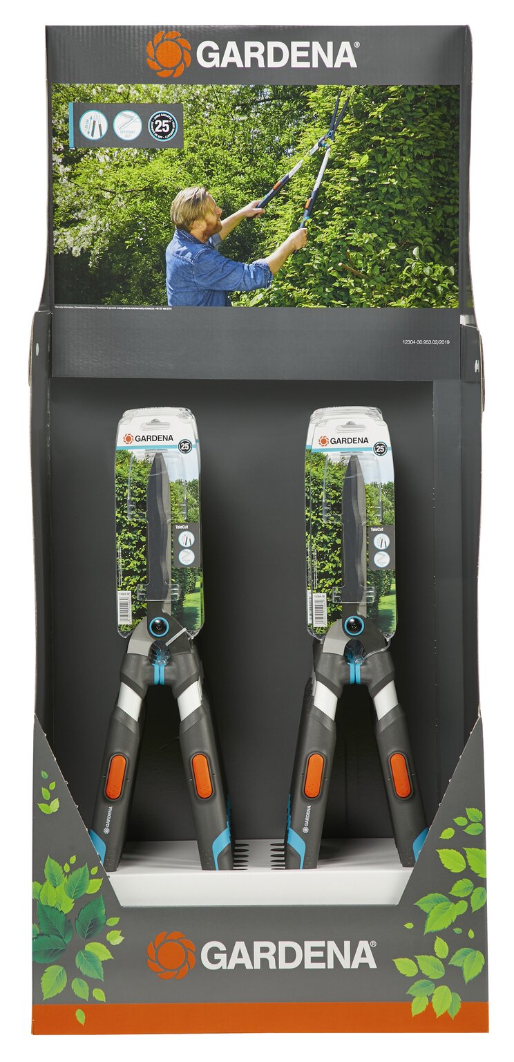 "Bij het snoeien van een heg is een groter bereik vaak zeer wenselijk. Daarom is het erg handig dat de TeleCut van GARDENA telescopische armen heeft die uitschuifbaar zijn, zodat je niet de ladder op hoeft. De langere hefboomwerking geeft bovendien meer snoeikracht. De aluminium armen zijn niet alleen licht, maar ook ergonomisch dankzij Ergo-Tec. Tijdens het snoeien ervaar je het comfort van de zachte buffer, wel zo prettig voor de gewrichten en makkelijk werken. De duurzame, robuuste stalen messen met gekartelde rand zorgen ervoor dat elke snede perfect is en zorgen voor zeer efficiënt snoeien. De messen van de TeleCut zijn voorzien van een antikleefcoating waardoor er niets aan blijft kleven."