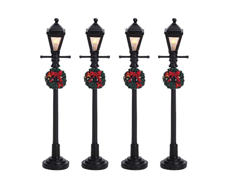 U maakt het straatbeeld in uw kerstdorp compleet met de authentieke details zoals de GAS LANTERN STREET LAMP, SET OF 4, B/O (4.5V). Deze set bestaat uit 4 straatlantaarns inclusief kerstdocoratie щn verlichting, waardoor de straten en pleinen in uw kerstdorp kunt verlichten щn decoreren tot in de fijnste details.