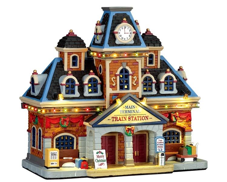 MAIN TERMINAL TRAIN STATION, WITH 4.5V ADAPTOR is een Lemax kersthuisje uit de Caddington Village collectie. Het trein station kunt u dan ook uitbreiden met trein rails en treinen, geheel naar uw eigen voorkeuren.