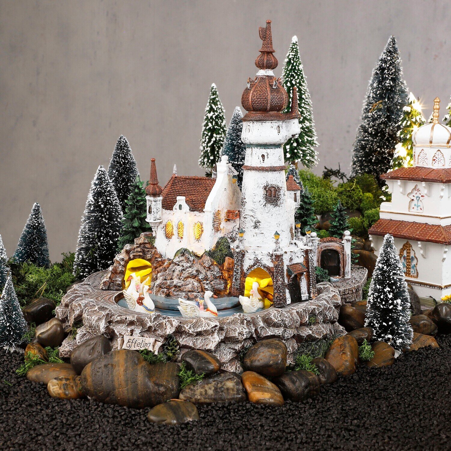 De Efteling is een wonderbaarlijke wereld waar sprookjes tot leven komen. Nu kan je hier ook thuis van genieten. Maak jouw Luville sprookjesbos compleet met deze attractie uit het sprookje De Zes Zwanen. Het kasteeltje is tot in detail nagemaakt en wordt op een mooie manier verlicht. Voor het kasteel ligt de vijver met de zwanen die langzaam voorbij varen. De miniatuur wordt geleverd inclusief adapter en heeft een afmeting van L24 x B31 x H27,5 cm.